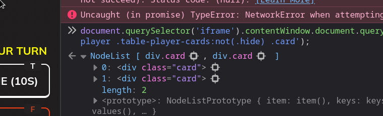 Our script is only executed on the club lobby page, not the game rooms/tables. Which is where we need to be! Our opponents' hole cards are accessible in the DOM on the table page.